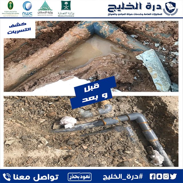لا تتردد في التواصل مع شركة درة الخليج فنحن شركة معتمدة لدي شركة المياه الوطنية